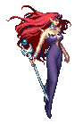 Queen Beryl from Sailor Moon SNES, a pixel art character with red hair and a staff, floating gracefully.