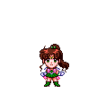Sailor Jupiter, also known as Makoto Kino, transforms in this pixel art animation, surrounded by swirling leaves and water drops.