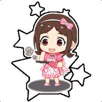 Sakura Muramatsu, a cute chibi idol, smiles brightly in a pink dress with a bow, holding a microphone.