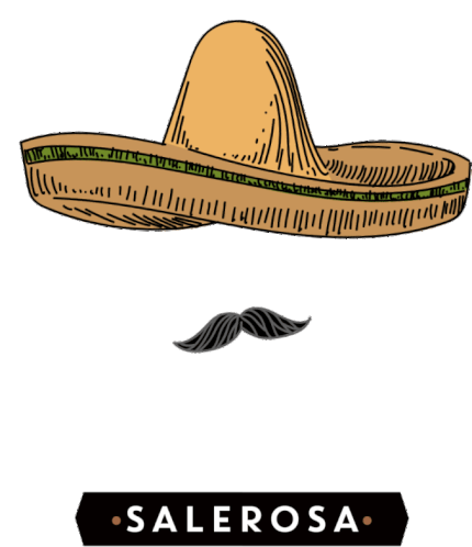 A vibrant animated sticker featuring a classic Mexican sombrero and a stylish mustache, with the word SALEROSA.