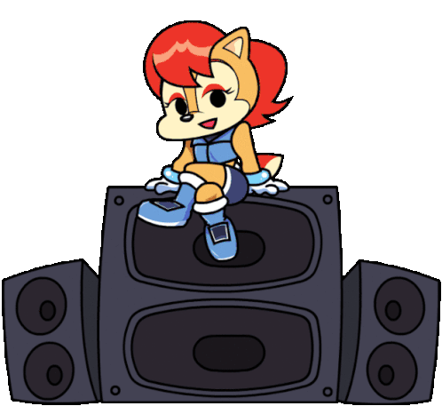 Sally Acorn from Archie Sonic, in a Friday Night Funkin' style, sitting confidently on large speakers.