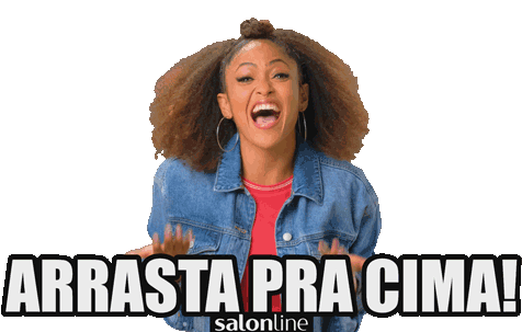 Juliana Gomes, also known as Ju Black, smiles and gestures with "Arrasta Pra Cima!" for Salon Line.