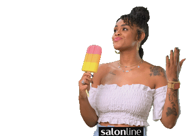 Lais Oliveira enjoys a refreshing popsicle on a hot summer day, showcasing her beautiful curly hair with Salon Line.