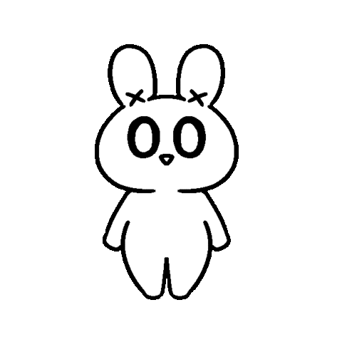 A cute, minimalist bunny character with '0.0' eyes performs a friendly salute gesture.