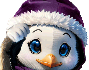 An adorable animated penguin, wearing a cozy purple hooded jacket, performs a charming salute.