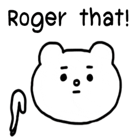 A cute cartoon bear salutes with a wink and rosy cheeks, accompanied by the text 'Roger that!' and sparkling stars.