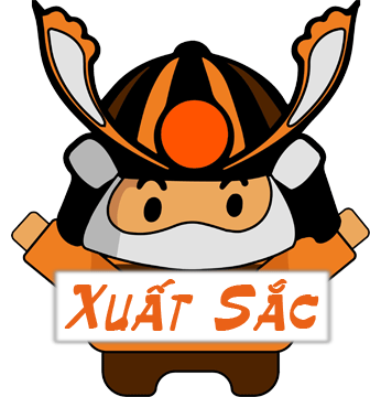 A cute samurai character holding a sign that says 'Xuất Sắc' (Excellent) in Vietnamese.