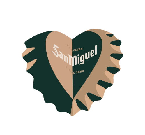 A heart-shaped design made from two San Miguel bottle caps, symbolizing love for the beer brand.