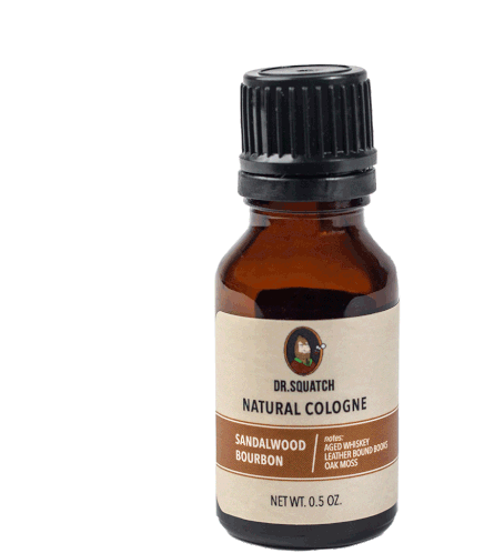 a bottle of dr.squatch natural cologne with sandalwood bourbon