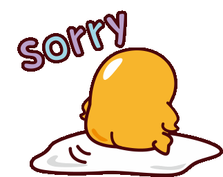 Sanrio's Gudetama, the lazy egg, expresses regret with a simple 'sorry' while resting on its egg white.