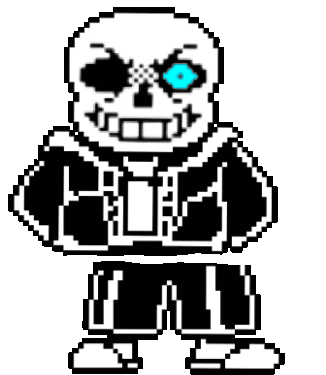 Sans from Undertale stands with his iconic glowing blue eye, flickering with power and intensity.