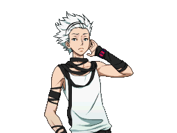 Santa 999 Aoi Kurashiki from Zero Escape, with white hair and a tank top, explains something with a hand gesture.
