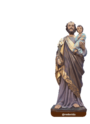 A beautiful animated sticker of Saint Joseph holding the infant Jesus, with the Rede Vida logo. Perfect for religious messages.
