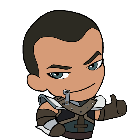 Sarge from Shadow Fight gives a thumbs up with a zipped mouth, signaling silence or 'keep quiet'.