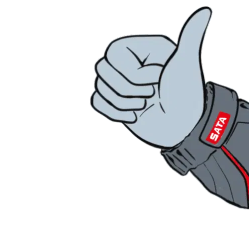An animated sticker featuring the global logo for SATA, a German brand known for spray guns and painting equipment.