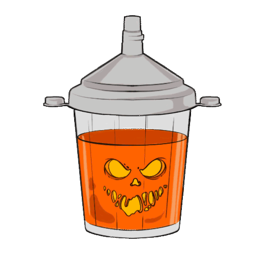A glowing, spooky jack-o'-lantern face appears in a SATA global cup, perfect for Halloween vibes.