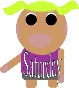 Animated sticker of a cartoon character with pigtails as the word 'Saturday' is written across its body.