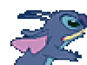 Animated pixel art sticker featuring Stitch from Lilo & Stitch, running with a purple tongue. Perfect for Saturday vibes!