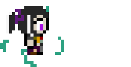 A pixel art sticker of Saturn Sprite, a warrior character with a teal cloak and purple accents, holding a weapon.