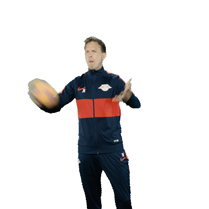 Julian Nagelsmann, visibly angry, throws a small ball away in frustration, captured in his team's tracksuit.