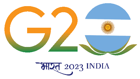 Animated G20 India 2023 logo featuring the Argentina flag and the 'Save Soil' message in Spanish, 'Salvemos el Suelo'.