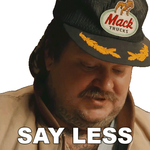 Chef Matty Matheson nods and says 'Say Less' while wearing a Mack Trucks hat, conveying understanding without further explanation.