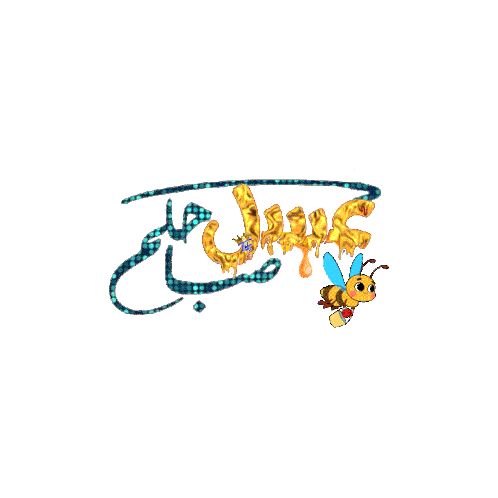 An animated Arabic greeting 'Good morning, your morning is honey' with a cute bee and dripping honey text.