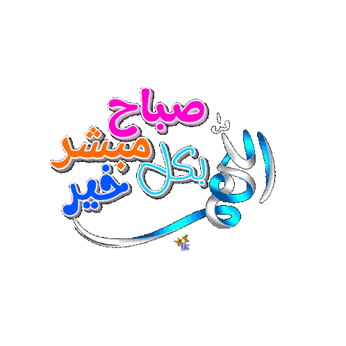 A vibrant animated sticker featuring Arabic calligraphy that reads 'Oh God, a morning full of good tidings' in colorful text.