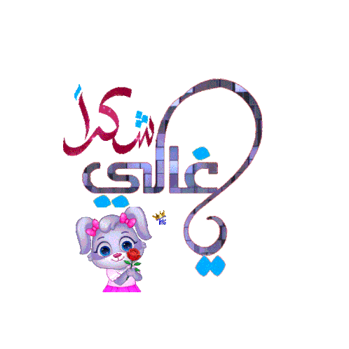 A cute cartoon rabbit holds a red rose with animated Arabic text 'شكرا يا غالي' (Thank you, my dear) for morning greetings.