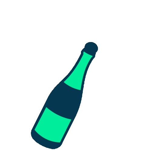 A green champagne bottle pops its cork, releasing a burst of vibrant green bubbles. Perfect for celebrations and New Year.