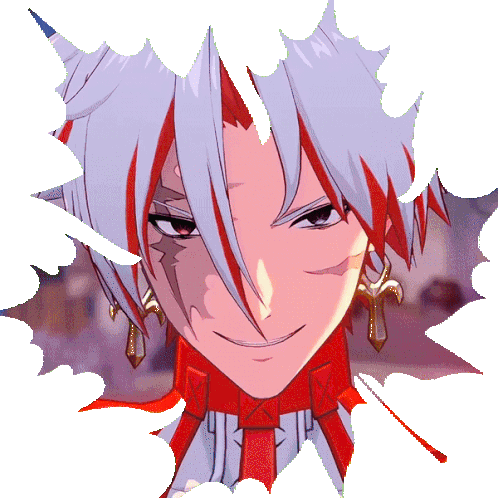 Scar from Wuthering Waves animated sticker, featuring his intense gaze and a fiery, dynamic effect within a maple leaf.