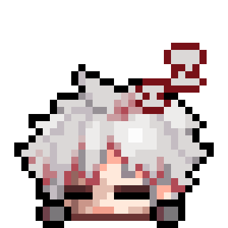 Pixel art sticker of Scar from Wuthering Waves (Wuwa) with white hair and a red and white scarf.