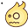 A cartoon yellow flame-shaped blob with a scared expression, featuring simple dot eyes and a jagged mouth.