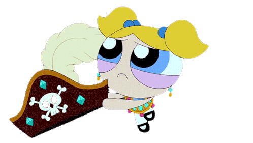 Bubbles from The Powerpuff Girls looks terrified, dressed in an Arabian outfit, then disappears into blue particles.