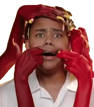 Ybn Cordae looks terrified as red, clawed hands pull at his face, making him appear scared and trembling.