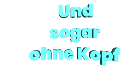 Animated text in light blue reads 'Schisch Moben Und Sogar Ohne Kopf,' translating to 'Schisch Moben And Even Without A Head,' with a playful, rotating effect.