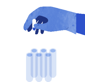 A gloved hand drops a blue liquid into a test tube, symbolizing scientific discovery and innovation.