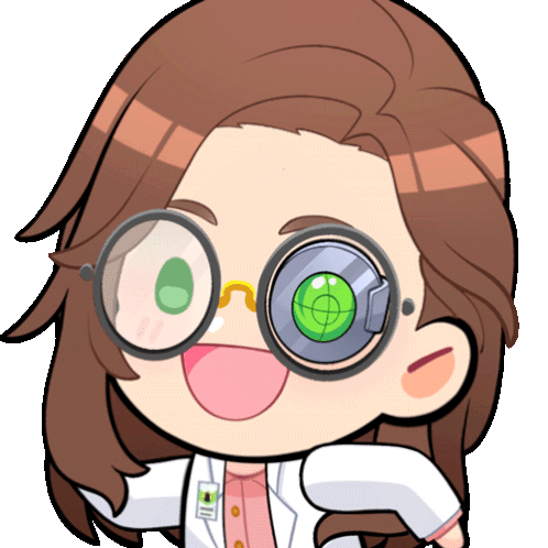 A cute animated sticker of a mad scientist with a cyborg eye, winking and sticking out her tongue mischievously.