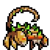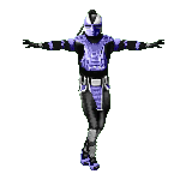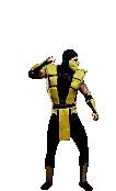 Scorpion from Mortal Kombat in a pixel art style, depicted in his iconic yellow and black ninja costume, ready for action.