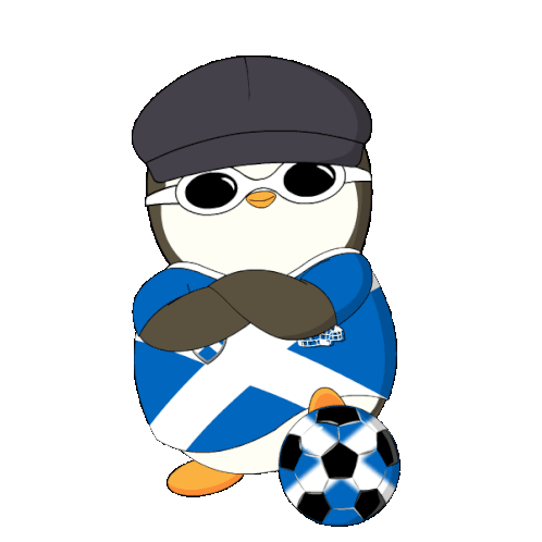 a penguin wearing a hat and sunglasses with a soccer ball