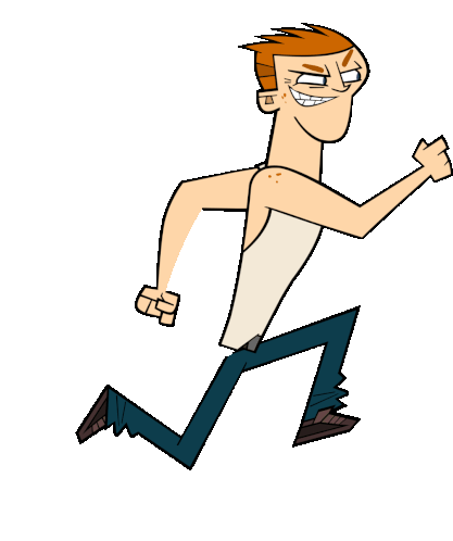 Scott from Total Drama runs with a mischievous smirk, his arms pumping and legs striding in this animated sticker.