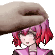 Pixel art sticker of Kanade Ontonokoji, the twin guitarist from Super Danganronpa Another 2, with red hair.