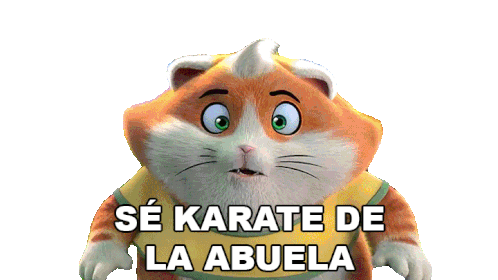 Meatball from 44 Gatos proudly declares 'Sé Karate De La Abuela' (I know Grandma's Karate) with funny expressions.