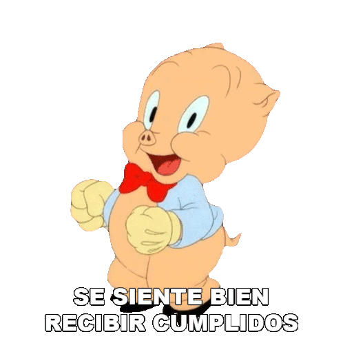 Porky Pig expresses joy, saying 'It feels good to receive compliments' in this animated sticker, perfect for showing appreciation.