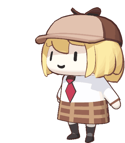 Seafoamboy's Smol Ame, a cute chibi character in a cap and school uniform, stands and sways gently, perfect for a subtle reaction.