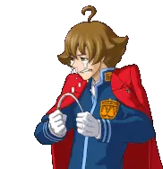 Sebastian Debeste from Ace Attorney Investigations 2, holding a screwdriver with a smug expression.
