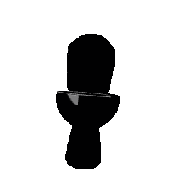 An animated black toilet with grey accents, representing the unique Secretserviceclub Cheat sticker.