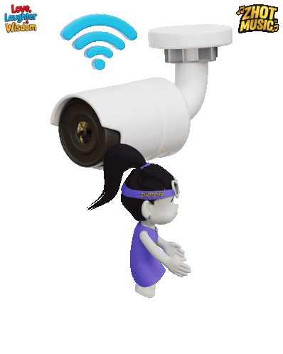a cartoon of a girl standing next to a camera with the words love laughter wisdom on the bottom
