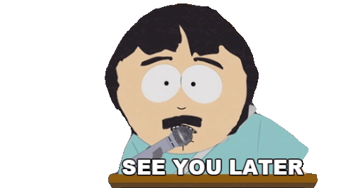Randy Marsh from South Park dramatically says "See You Later" into a microphone, expressing a memorable farewell.