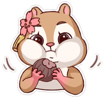 A cute squirrel from Seekersnotes with a flower in its hair happily eats a nut, cheeks full and content.